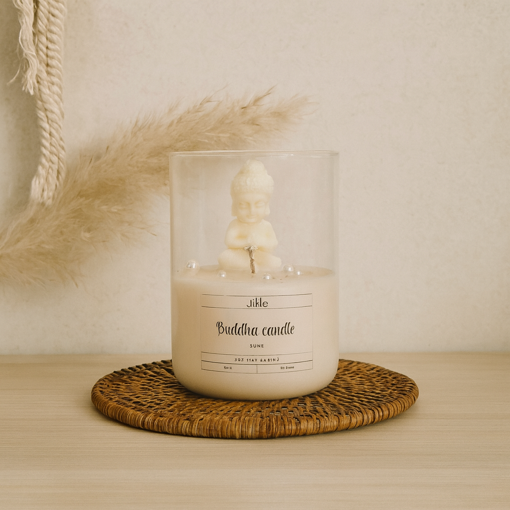 To Buddha Candle είναι ένα διακοσμητικό minimal luxury κερί σε φυσική απόχρωση. Διακοσμημένο με έναν μικρό Βούδα σε φυσική απόχρωση και πέρλες σε διάφορα μεγέθη, σίγουρα είναι ένα κερί που θα κερδίσει τις εντυπώσεις τόσο στον χώρο όσο και αν το επιλέξετε σαν δώρο. Περιέχει 100% φυτικό κερί σόγιας, 1 βαμβακερό φυτίλι και ξύλινο καπάκι. Επιλέξτε το άρωμα που επιθυμείτε. Τα χειροποίητα κεριά μπορούν να δημιουργήσουν χαλαρωτική ατμόσφαιρα στο σπίτι ή στον επαγγελματικό σας χώρο.